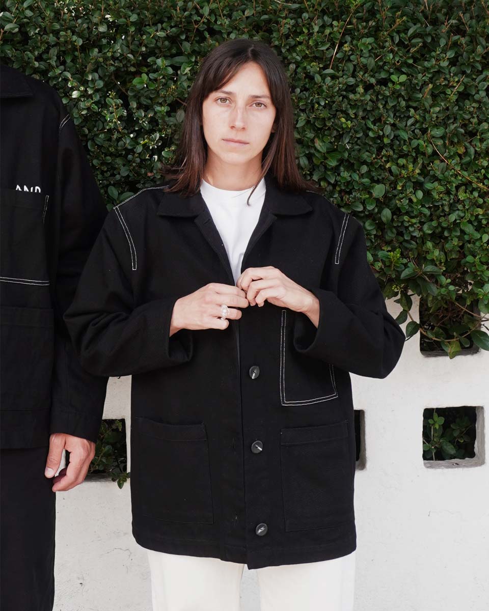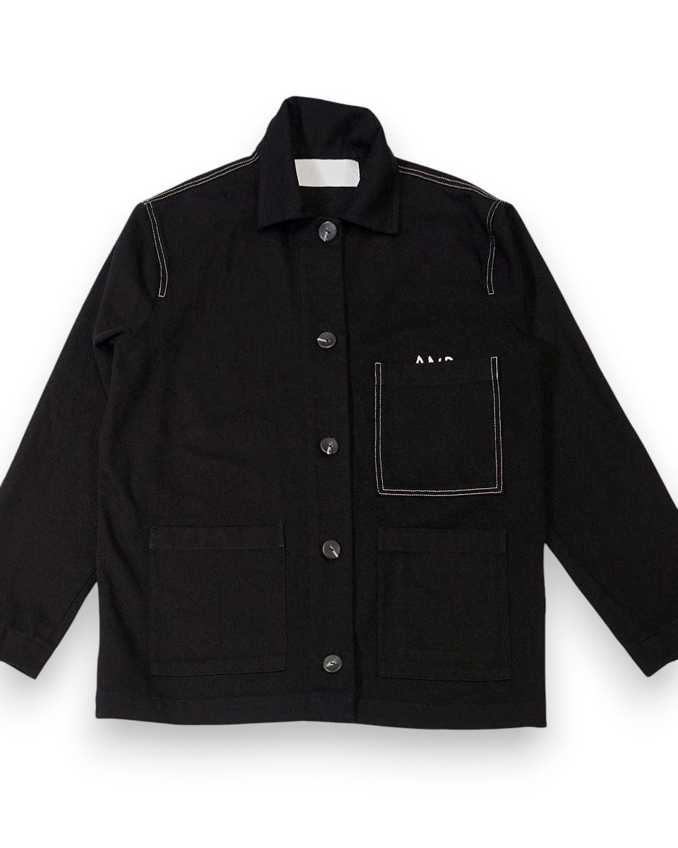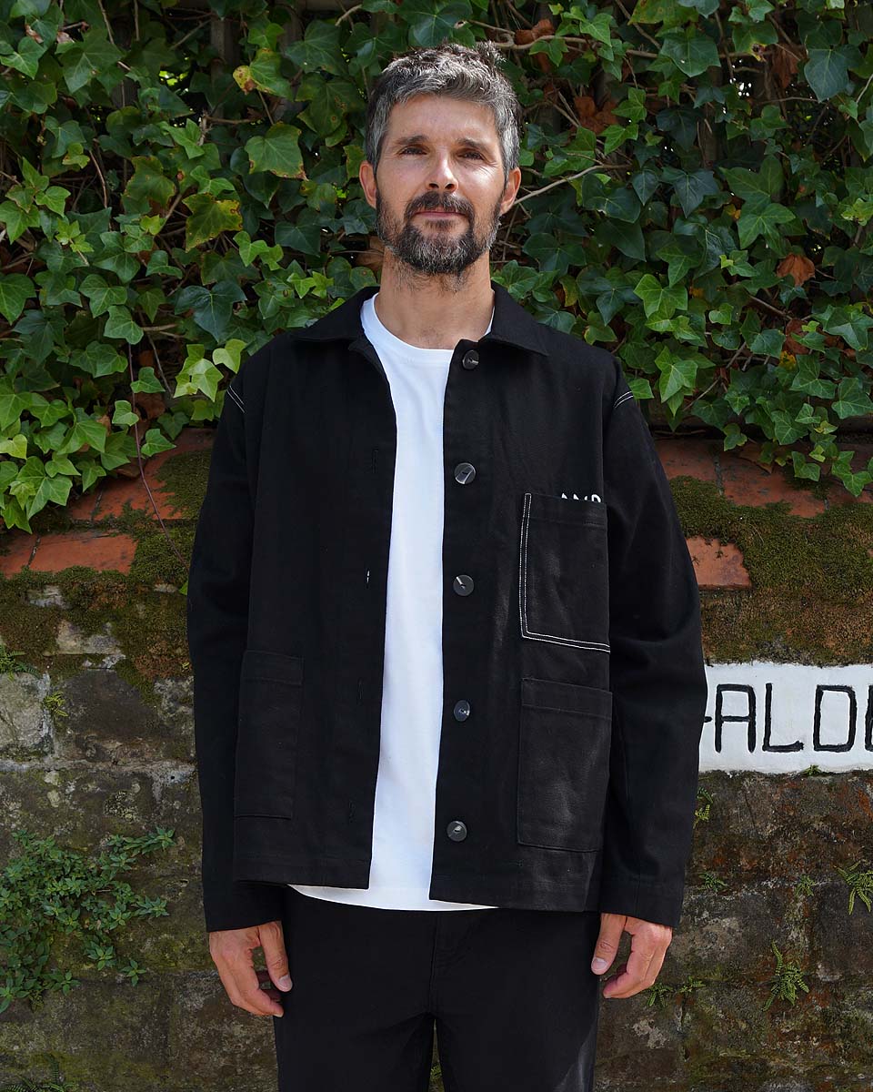 Bajo el bolsillo izquierdo, un detalle oculto y muy AZABALA, la palabra AND bordada en hilo de algodón blanco roto. Rematada con pespuntes en contraste que le aportan un toque urbano.